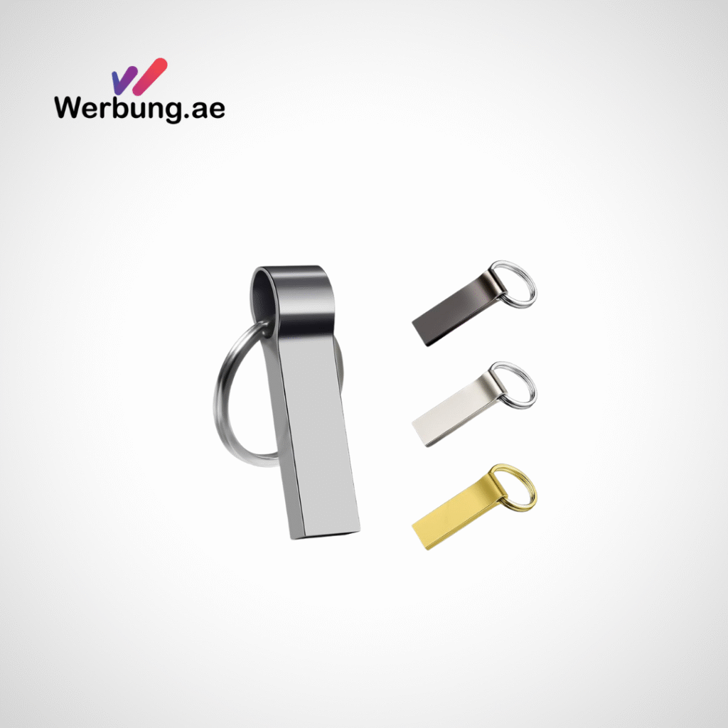 Werbung.ae Metal USB Flash Drive offers powerful storage in a compact mini design (48x12x9mm). Available in classic black, silver, and gold, with capacities from 4GB–64GB. Durable metal body ensures reliability, portability, and style for storing