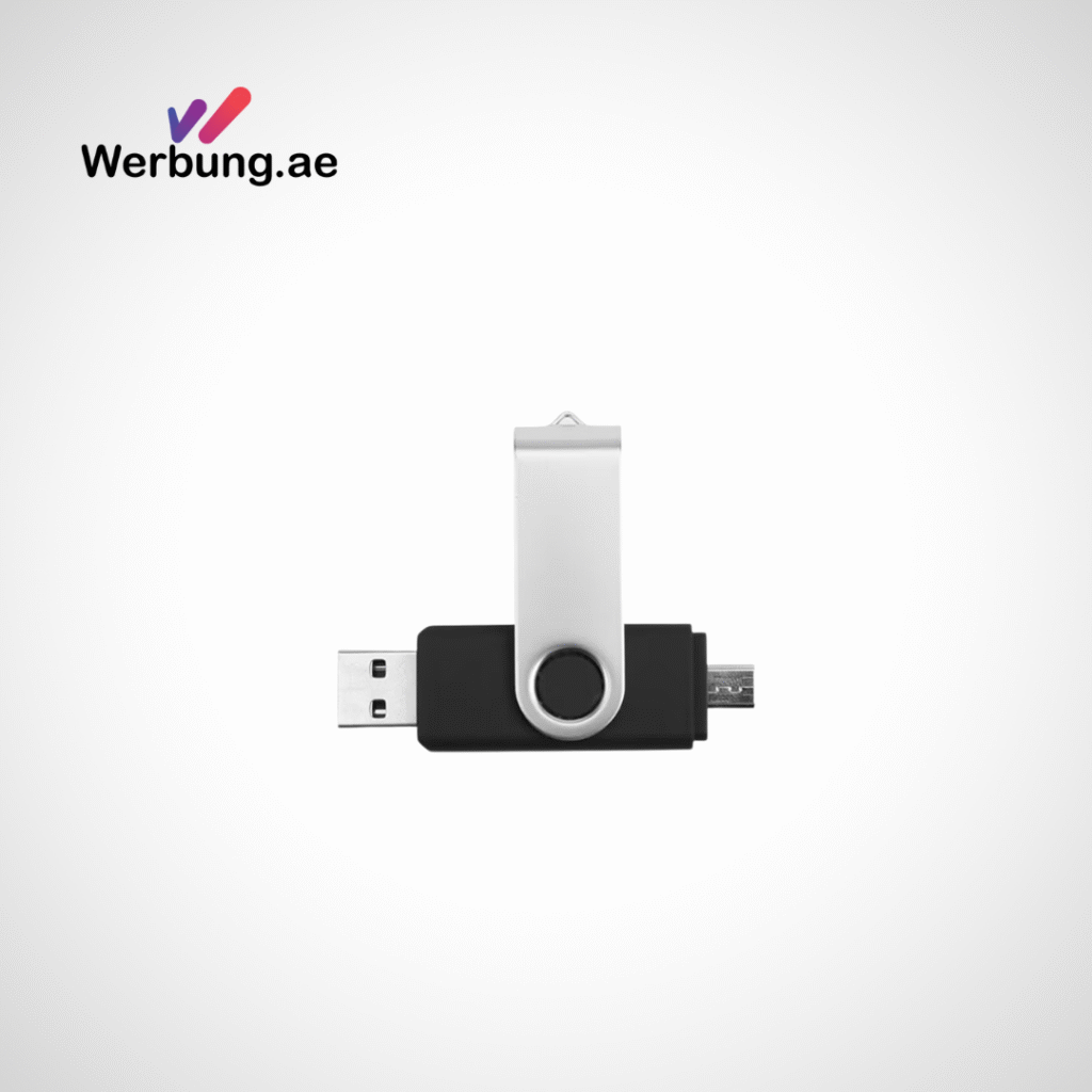 Werbung.ae Smart Electronic Swivel OTG Flash Drive with Type-C to USB connectivity is perfect for smartphones and laptops. Available in 4GB–64GB, it ensures fast, secure data transfer. Made from durable metal + plastic with a sleek swivel design (70x20x10mm) for style and portability.